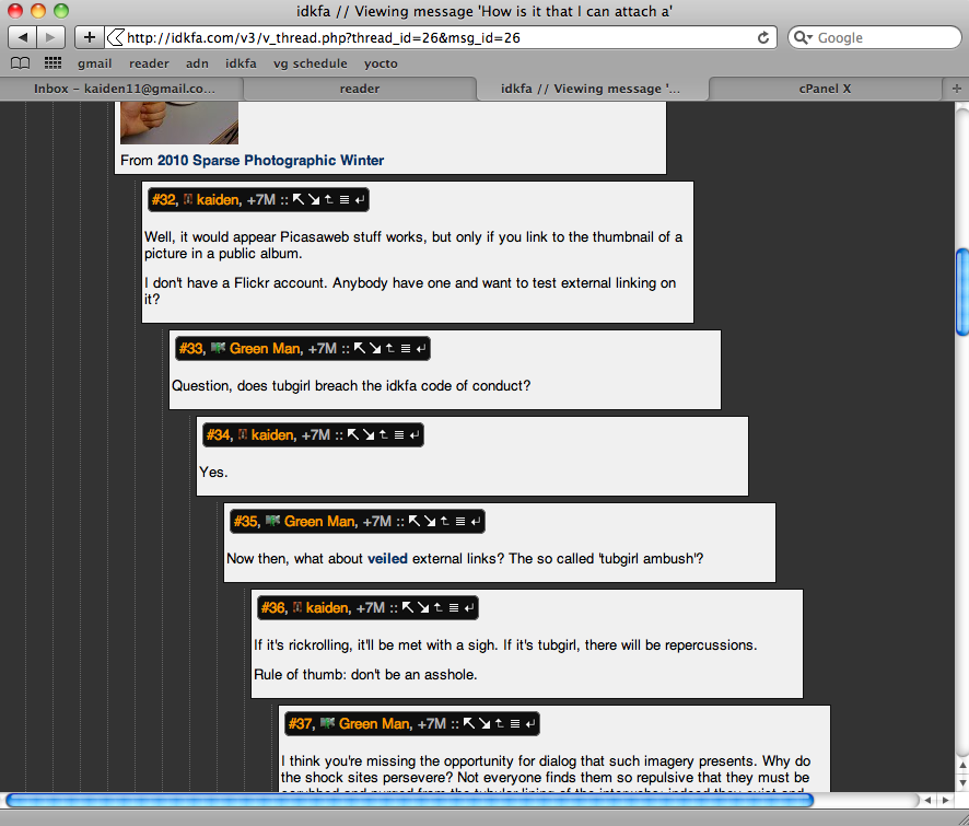 I did, however, find a way to adjust the aesthetics portion to draw a dotted line to give a better idea as to the shape/depth of the threads. I also added a few more characters to signify the latest and current posts (asterisks and the arrow quotes, respectively). At least that's something.