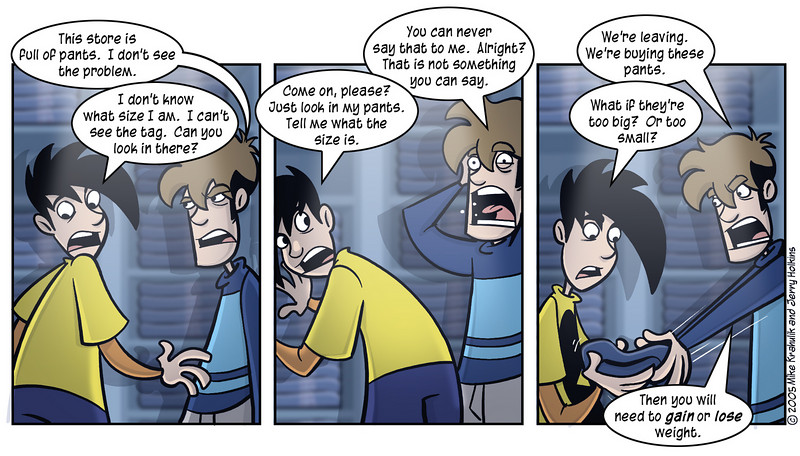 I suppose. Also means I might have to buy new clothes. The last time I bought jeans, I bought them at Costco. Which is an experience. In anxiety. You've got the massive influx of people pouring in, glaring at you as they push their expectant carts towards their quarry. I panicked. I chose two pair of what I thought was my size and didn't look back. I lucked out that they fit well at the time, but it could have gone poorly.